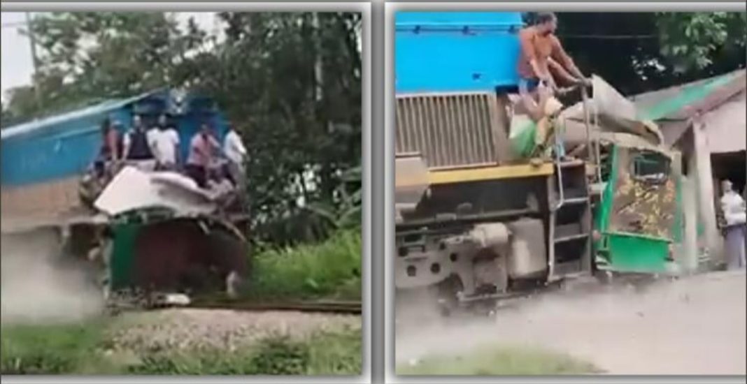গাজীপুরের কালীগঞ্জের চুয়ারিয়াখোলা রেলক্রসিংয়ে ট্রেনের ধাক্কায় একটি ব্যাটারিচালিত অটোরিকশা দুমড়ে-মুচড়ে যায়। পরে সেটি প্রায় আধা কিলোমিটার ট্রেনে নিয়ে যায় ট্রেনটি।