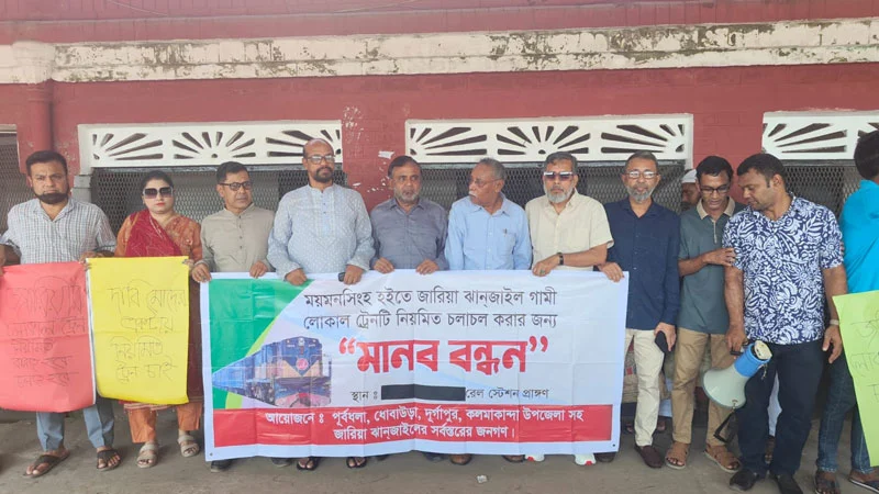 মানববন্ধনে উপস্থিত লোকজন দ্রুত ময়মনসিংহ থেকে জারিয়াগামী লোকাল ট্রেনটি নিয়মিত চলাচলের জোর দাবি জানান। তারা বলেন, মানুষের দুর্ভোগ লাঘবে রেল কর্তৃপক্ষের দ্রুত পদক্ষেপ নেওয়া আবশ্যক। অবিলম্বে এই রুটে ট্রেন চলাচল স্বাভাবিক দেখতে চান তারা।মানববন্ধন শেষে ময়মনসিংহ রেলস্টেশনের সুপারের কাছে একটি স্মারকলিপি দেওয়া হয়েছে। রেলওয়ের উপসচিব বরাবর পাঠানো স্মারকলিপিতে উল্লেখ করা হয়, ময়মনসিংহ থেকে জারিয়াগামী লোকাল ট্রেনটি এক মাস ধরে বন্ধ থাকায় অসুবিধা হচ্ছে যাত্রীদের। জারিয়া থেকে ময়মনসিংহে যাতায়াতকারী সাধারণ মানুষ প্রতিদিনের স্বাভাবিক জীবনযাত্রায় বাধার সম্মুখীন হচ্ছেন। ময়মনসিংহ-জারিয়া রুটে ট্রেনটি চালুর জন্য তাঁর হস্তক্ষেপ কামনা করা হয়েছে।